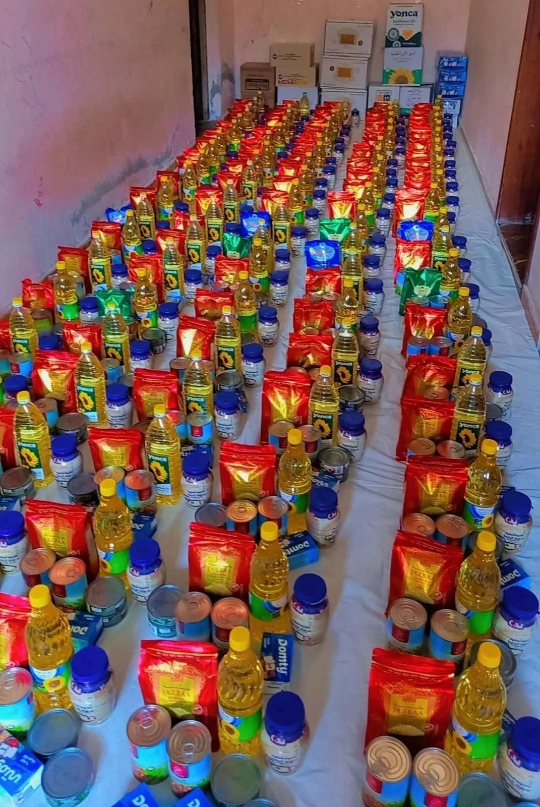 - Parcels were distributed. Each parcel contains (1 liter of rice, 1 kilo of rice, 1 can of tahini, 2 cans of beans, 2 cans of cheese, and 2 cans of tuna) to 75 families in Gaza